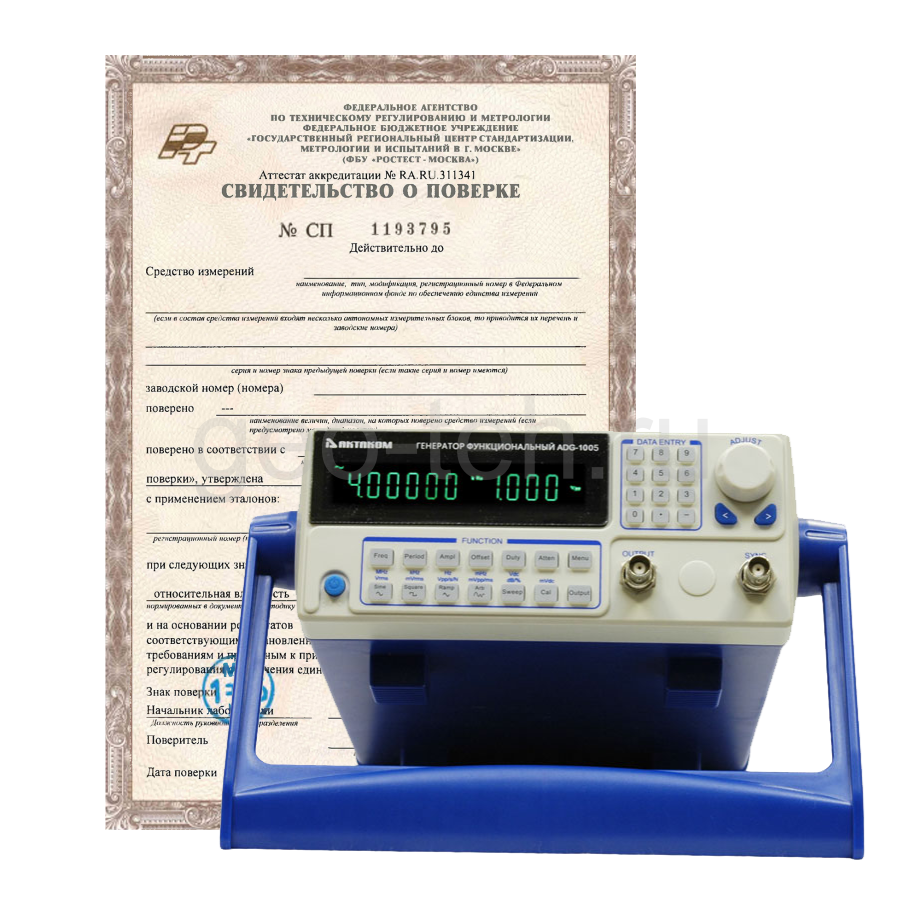 Поверка генератора сигналов производится один раз в год, если прибор внесен в Госреестр СИ и используется в сфере ГРОЕИ. Поверка, выполняемая уполномоченной метрологической организацией, позволяет определить исправность прибора и соответствие точностных параметров паспортным данным.