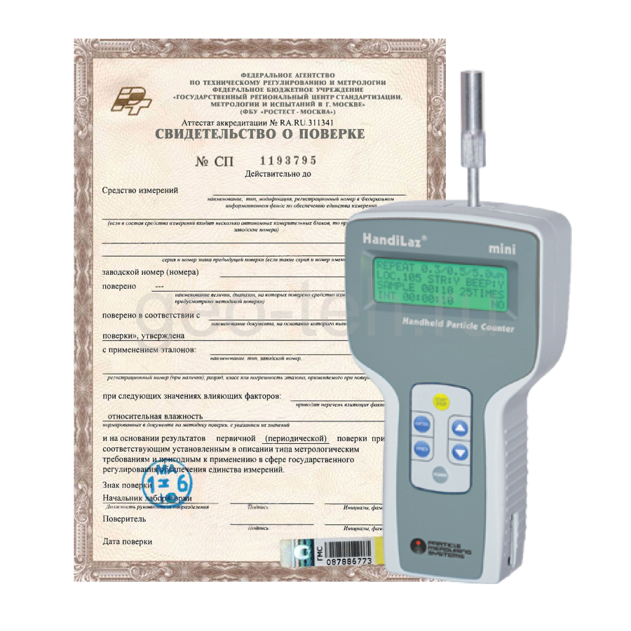 Поверка счетчиков частиц проводится каждый год для приборов, внесенных в Госреестр СИ и использующихся для измерений в сфере ГРОЕИ. Поверка должна производиться в установленные сроки в строгом соответствии с утвержденной документацией для данного типа измерителей. Тем самым обеспечивается контроль соответствия метрологической исправности.